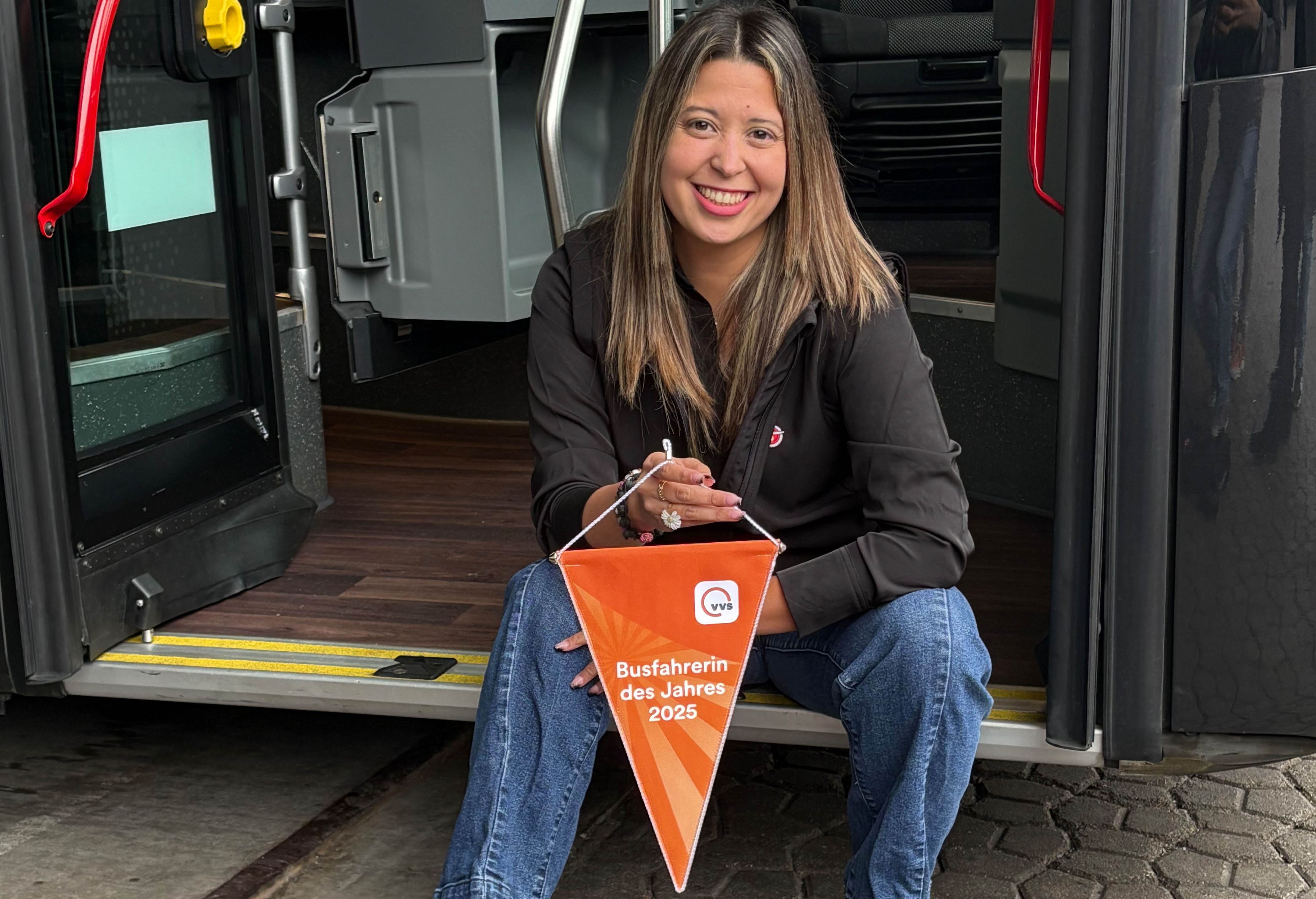 Mariana Martin Bolivar von Schlienz Tours hat die Auszeichnung „Busfahrerin des Jahres 2025“ für den Rems-Murr-Kreis verliehen bekommen. Erhard Kiesel, der Geschäftsführende Gesellschafter, und VVS-Geschäftsführer Dr. Jan Neidhardt gratulierten der 32-jährigen aus Deizisau. Als Dankeschön bekam Mariana Martin Bolivar vom VVS einen Einkaufsgutschein im Wert von 200 Euro, den sie in verschiedenen Geschäften in Esslingen einlösen kann.